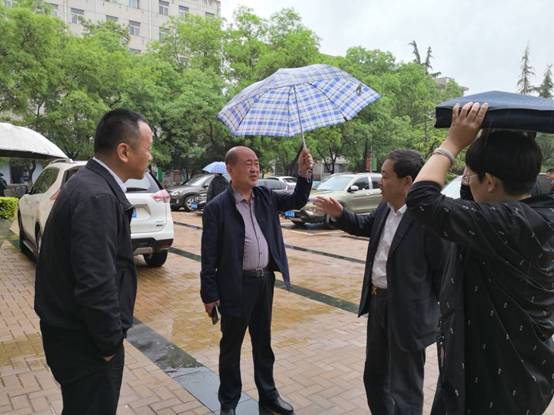 省财政厅会计处处长刘真彦、市财政局会计局局长李笔强到西北师大考点冒雨检查考前准备工作。