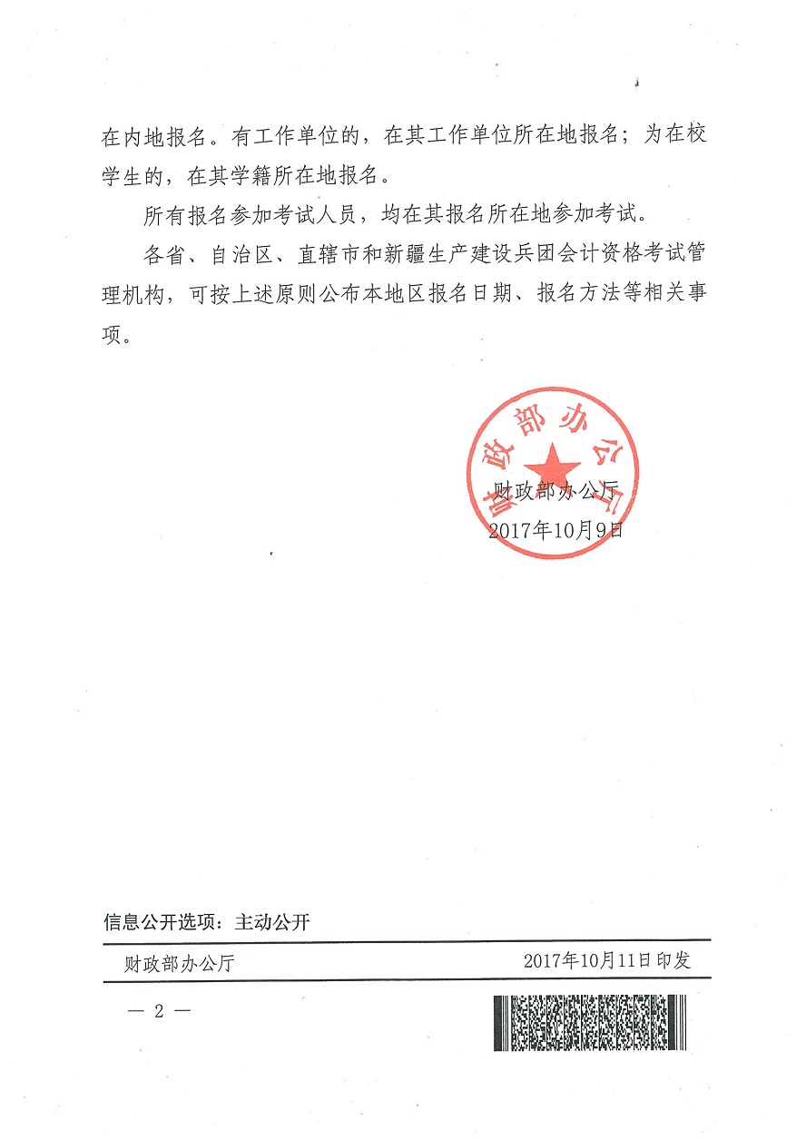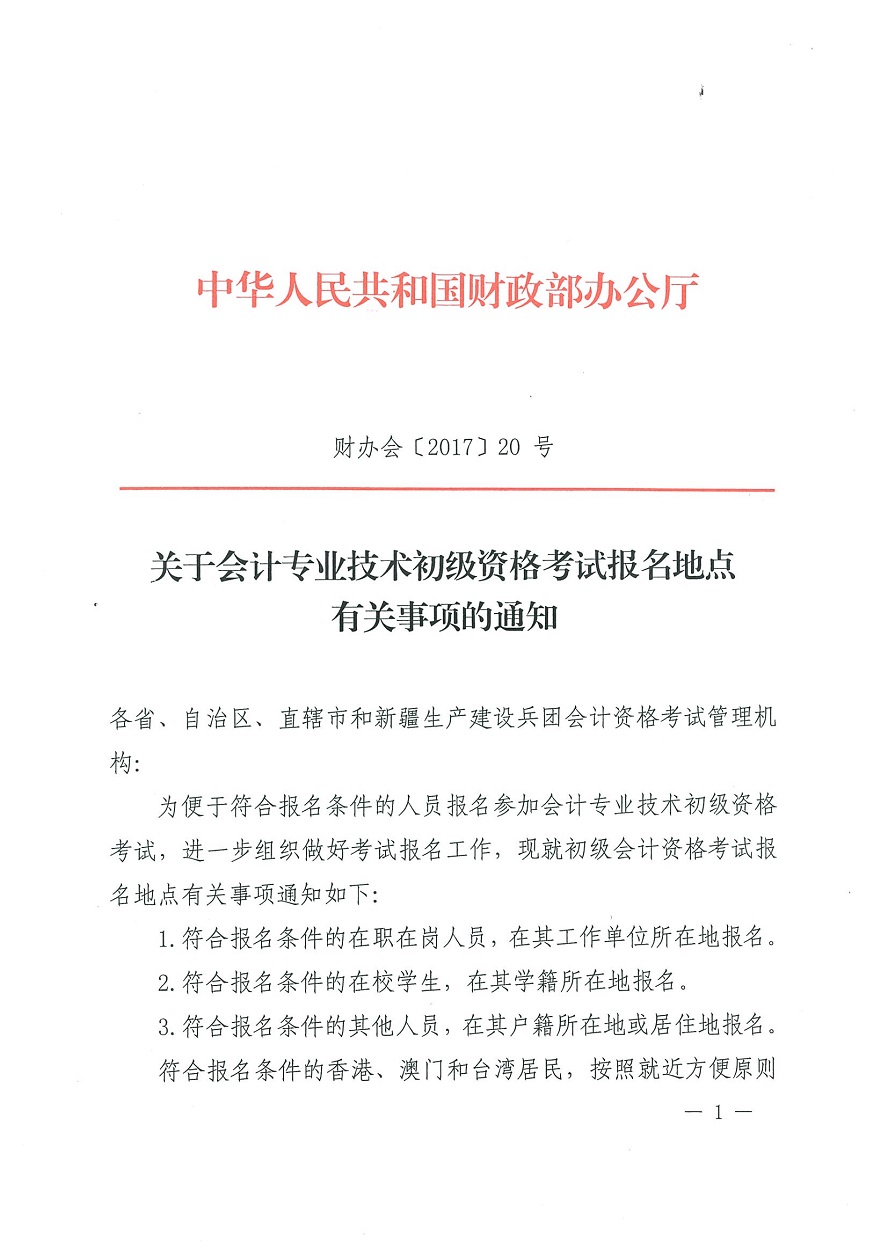 转载 | 关于会计专业技术初级资格考试报名地点有关事项的通知